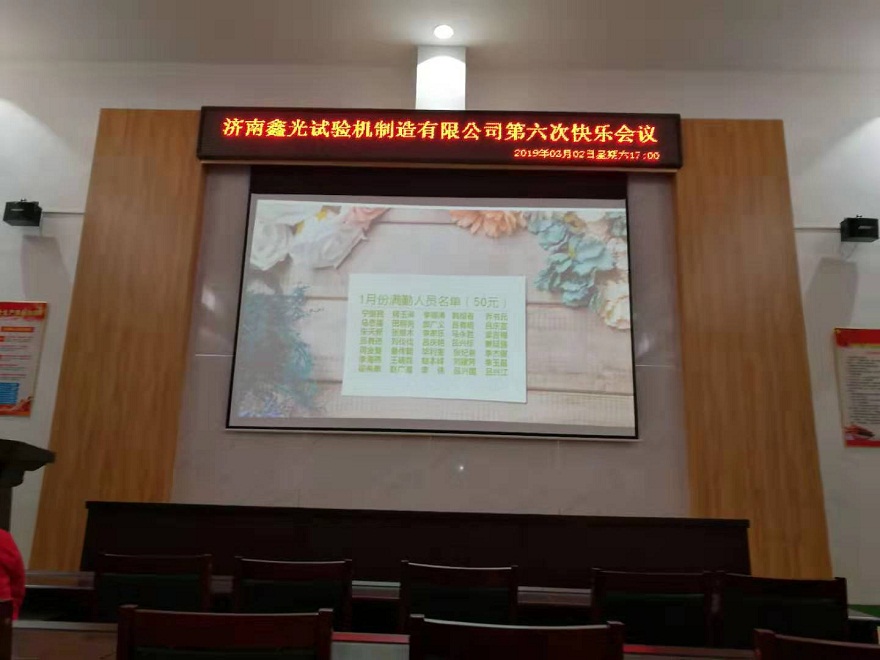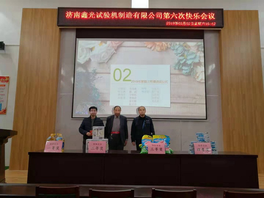 2019年3月2日下午,济南鑫光试验机制造有限公司迎来了2019年首次快乐会议,也是第六次快乐会议了,这次的会议由销售部郑姣主持,温馨而简单,会议中依旧充满了欢声笑语。